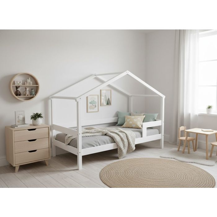 Lozko Domek Biale Z dwiema Barierkami 190x90 - Super Cena